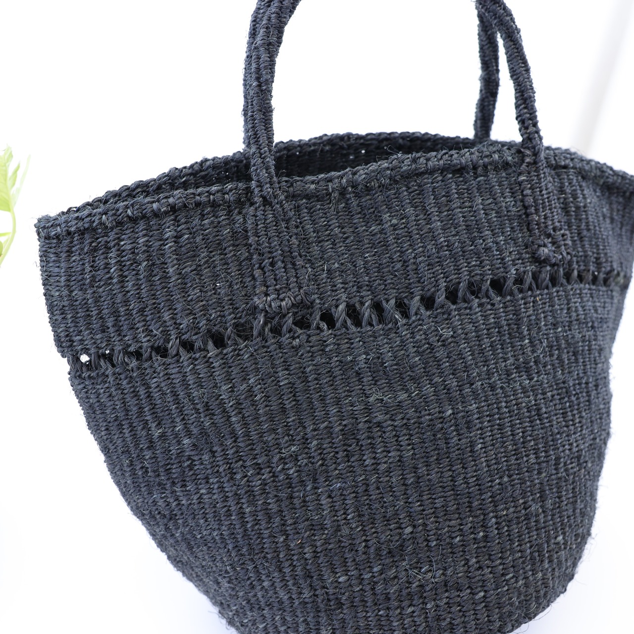 透かしラインを編み込んだシックなテイストのサイザルカゴバッグ9インチタイプです。