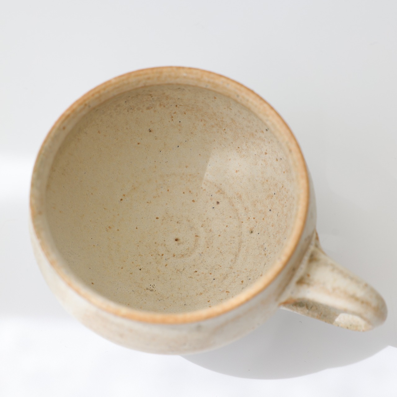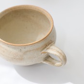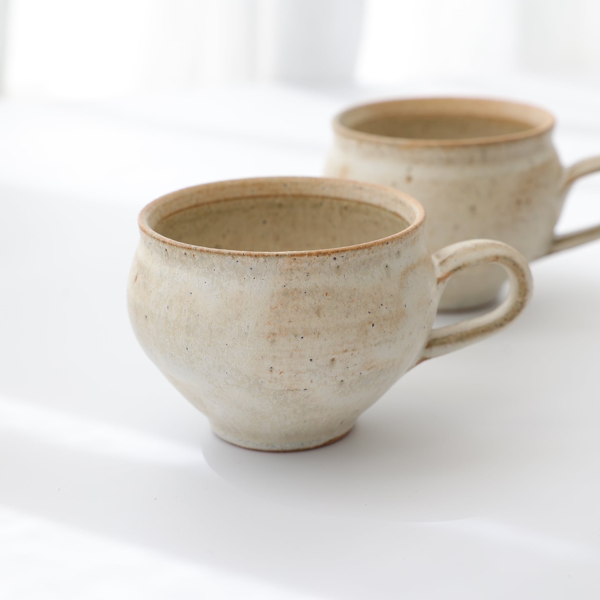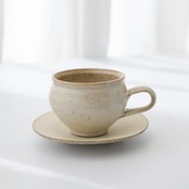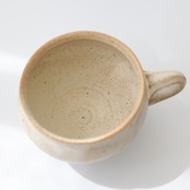 丸みのあるフォルムが手にしっとりを馴染む粉引きのマグカップ。