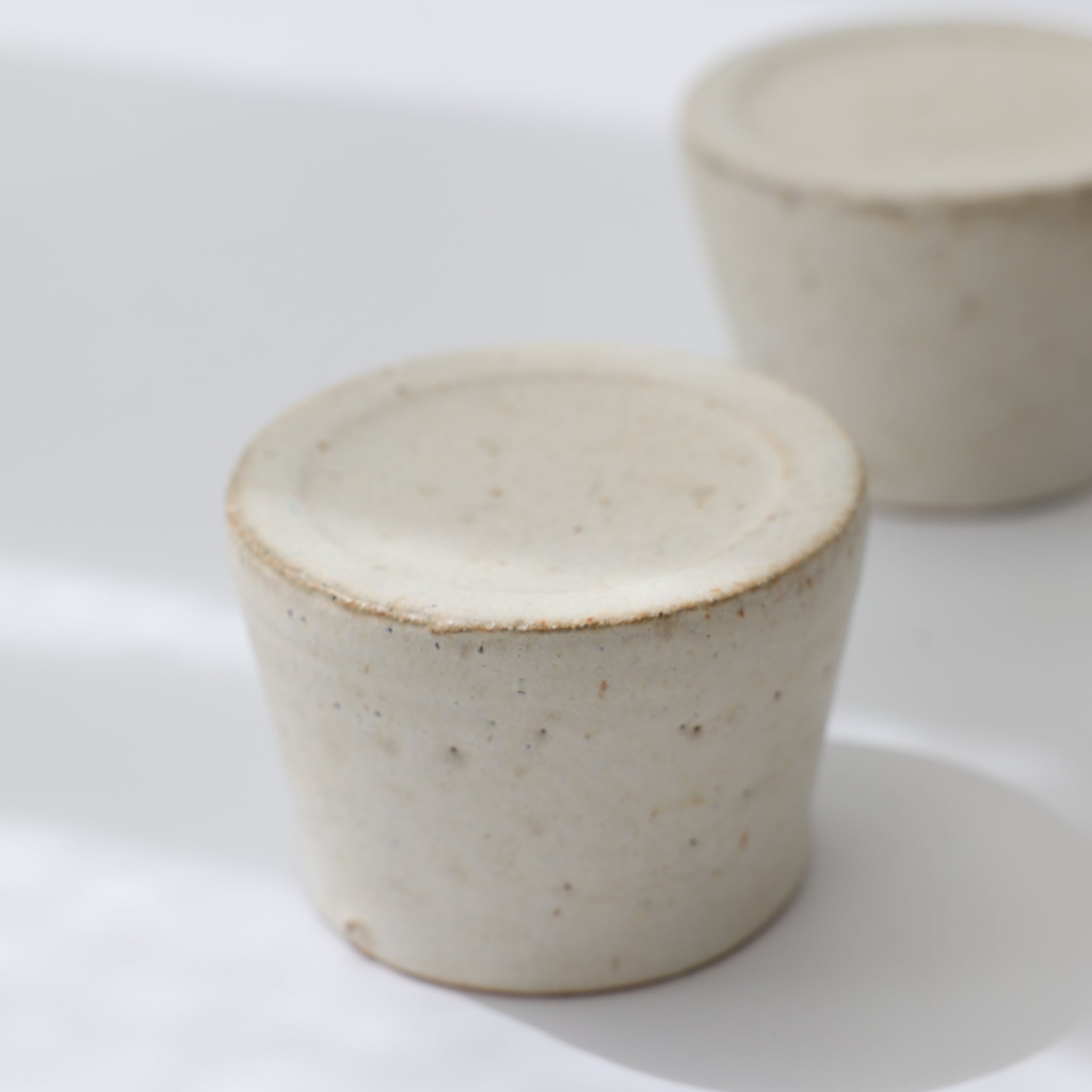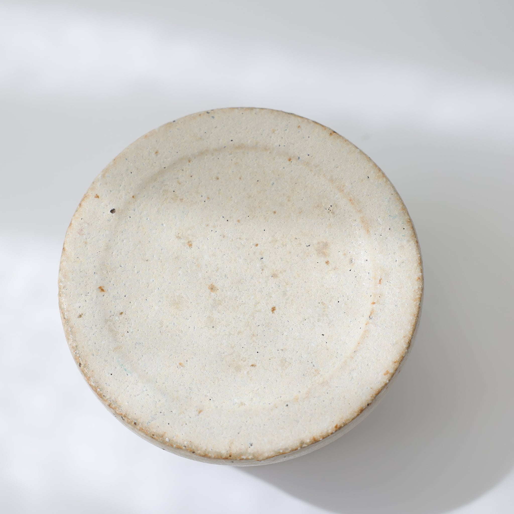 作家による手作業で作られた作品のため、色合い、形、大きさ、重さ、絵柄の入り方、釉薬のムラなどが異なります。また、縁や底にみられる所々の凹みや、器表面に入った微細なキズや汚れ、ピンホール*や鉄粉*は、制作過程にできてしまう、自然な現象となります。