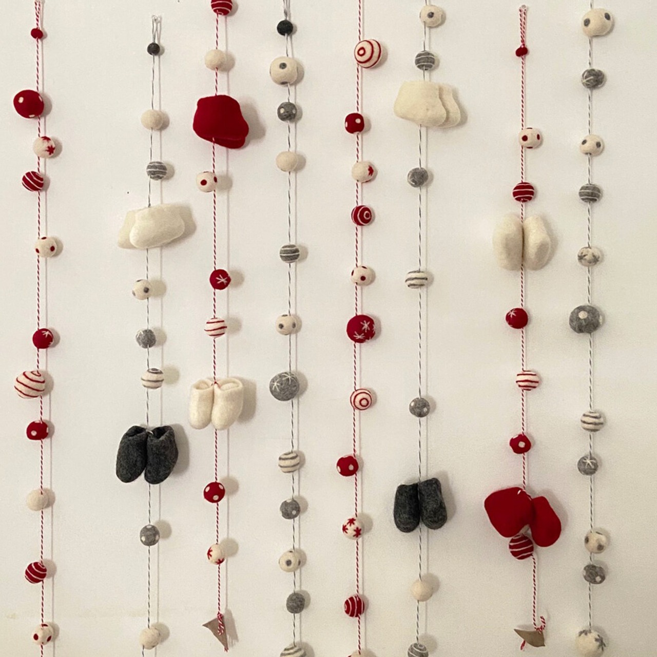 手作りのフェルトボールをつなげて作ったクリスマスガーランド。