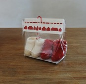 すべてひとつひとつ丁寧な手仕事で作られており、一足ずつ赤白のコットン紐でつながれています。