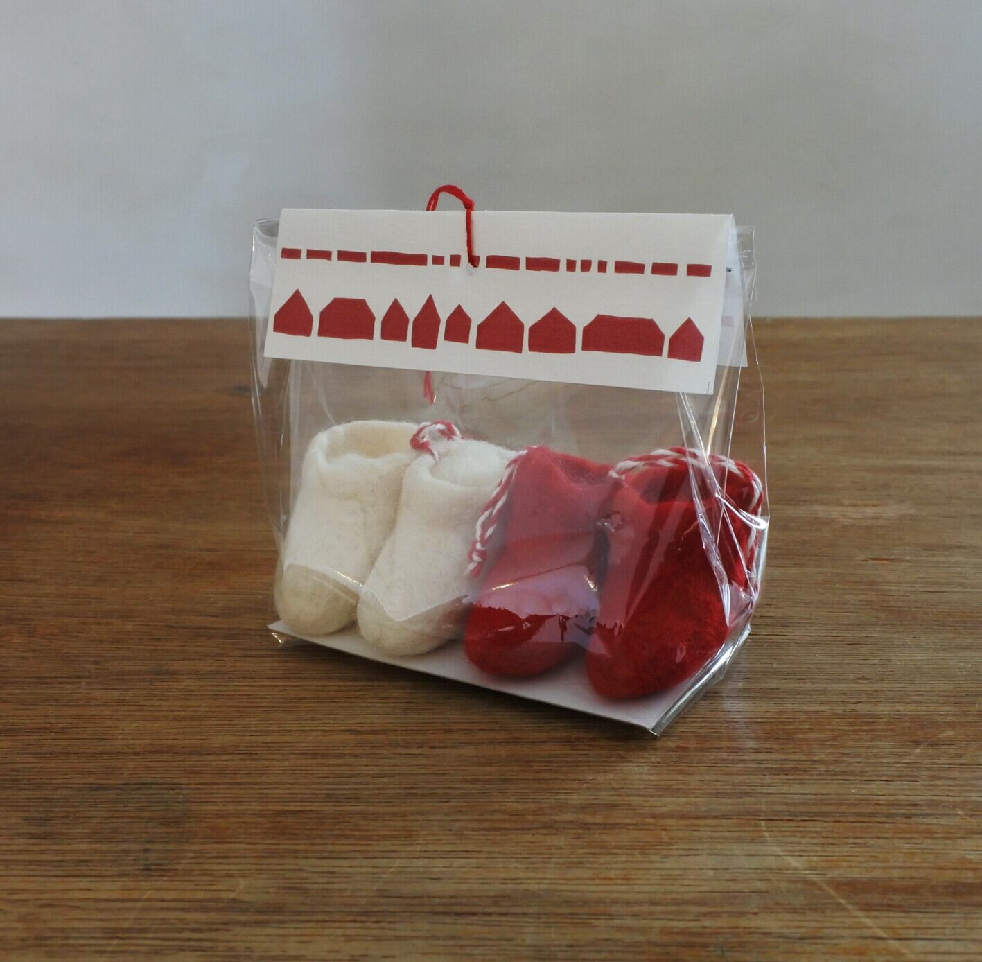 北欧風のシンプルでかわいらしいかたちで、一足ごとに少しずつ異なる手作りならではの表情が楽しめます。