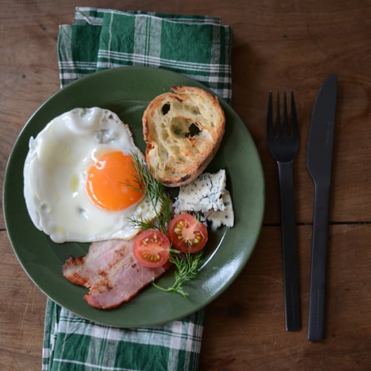 パンと目玉焼きをのせたりと、朝ごはんの時に使いたくなるサイズのお皿です。