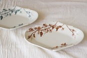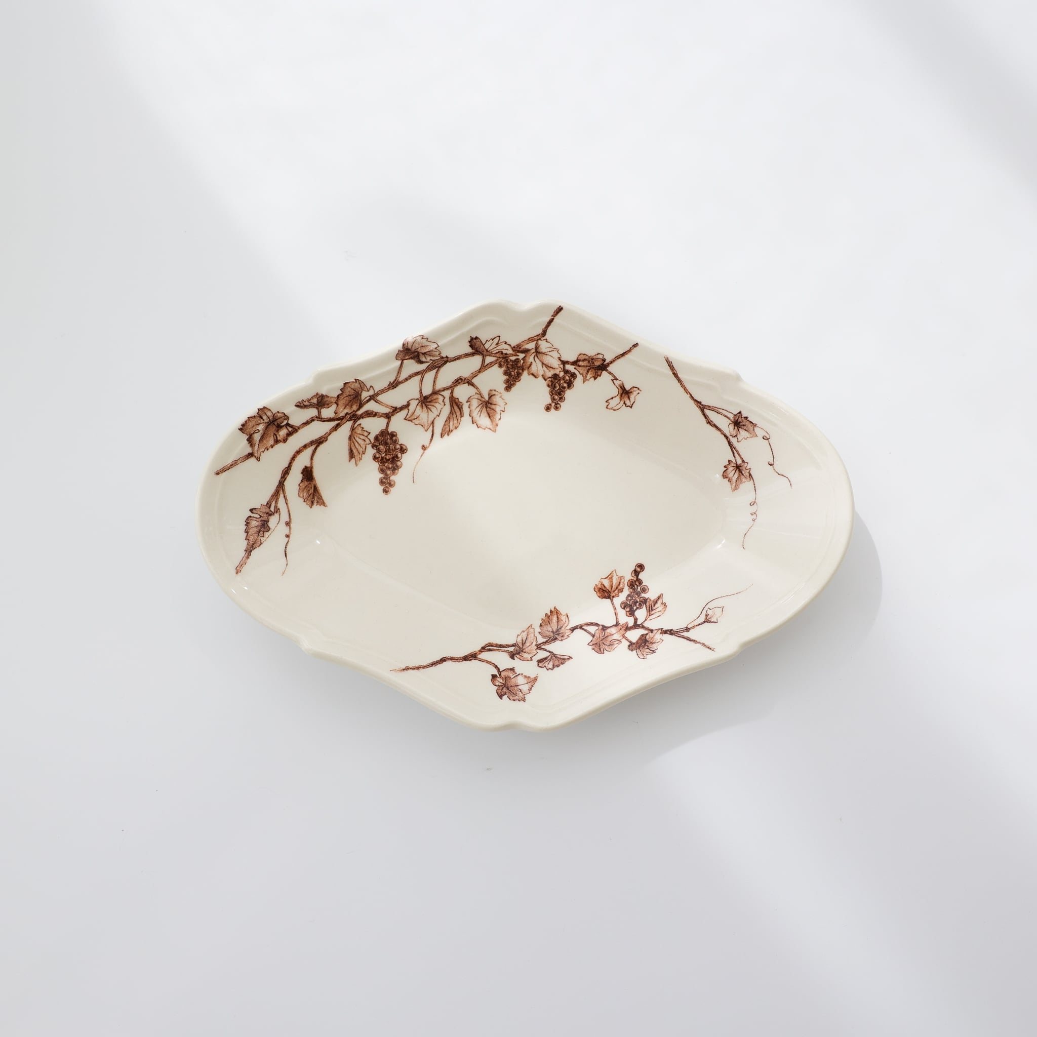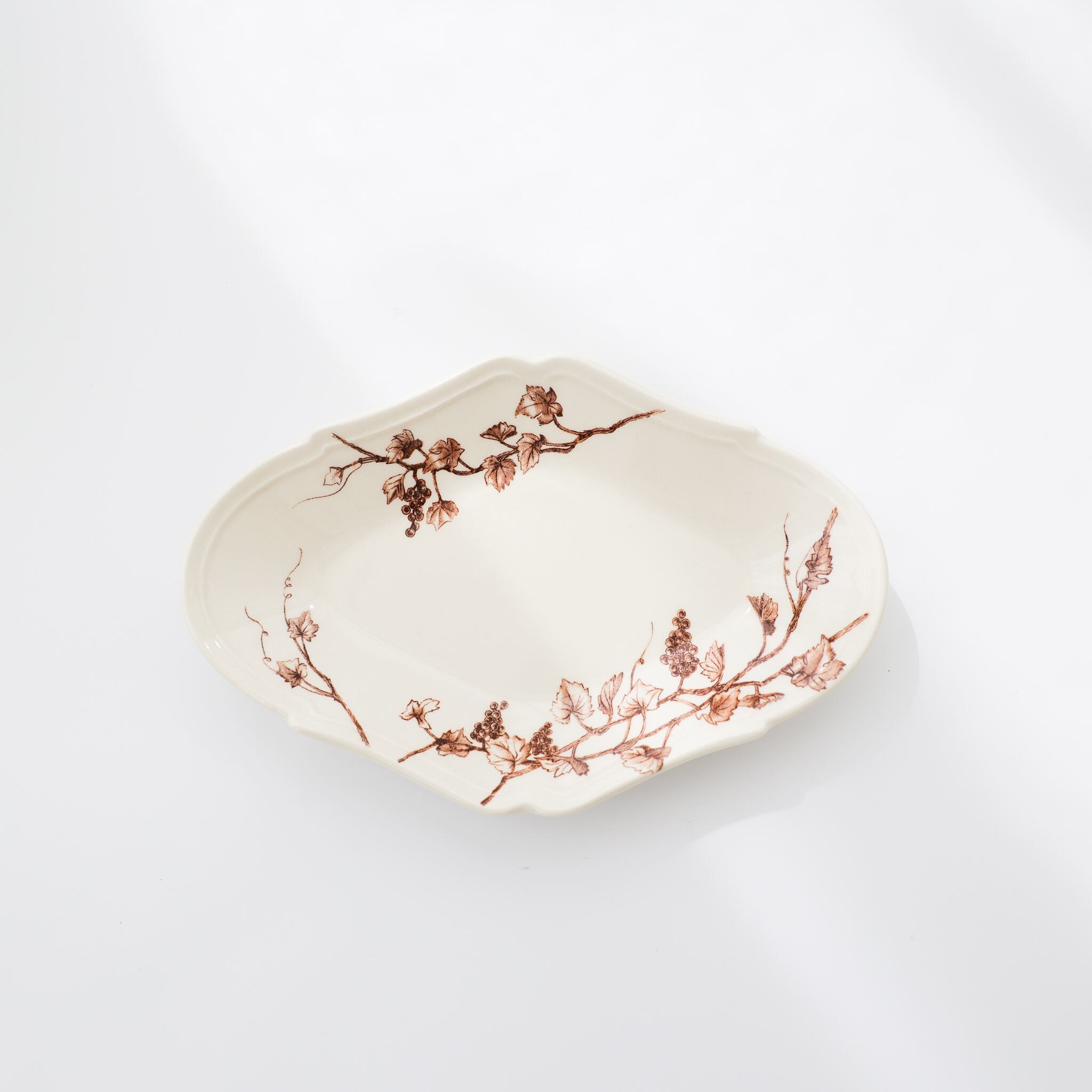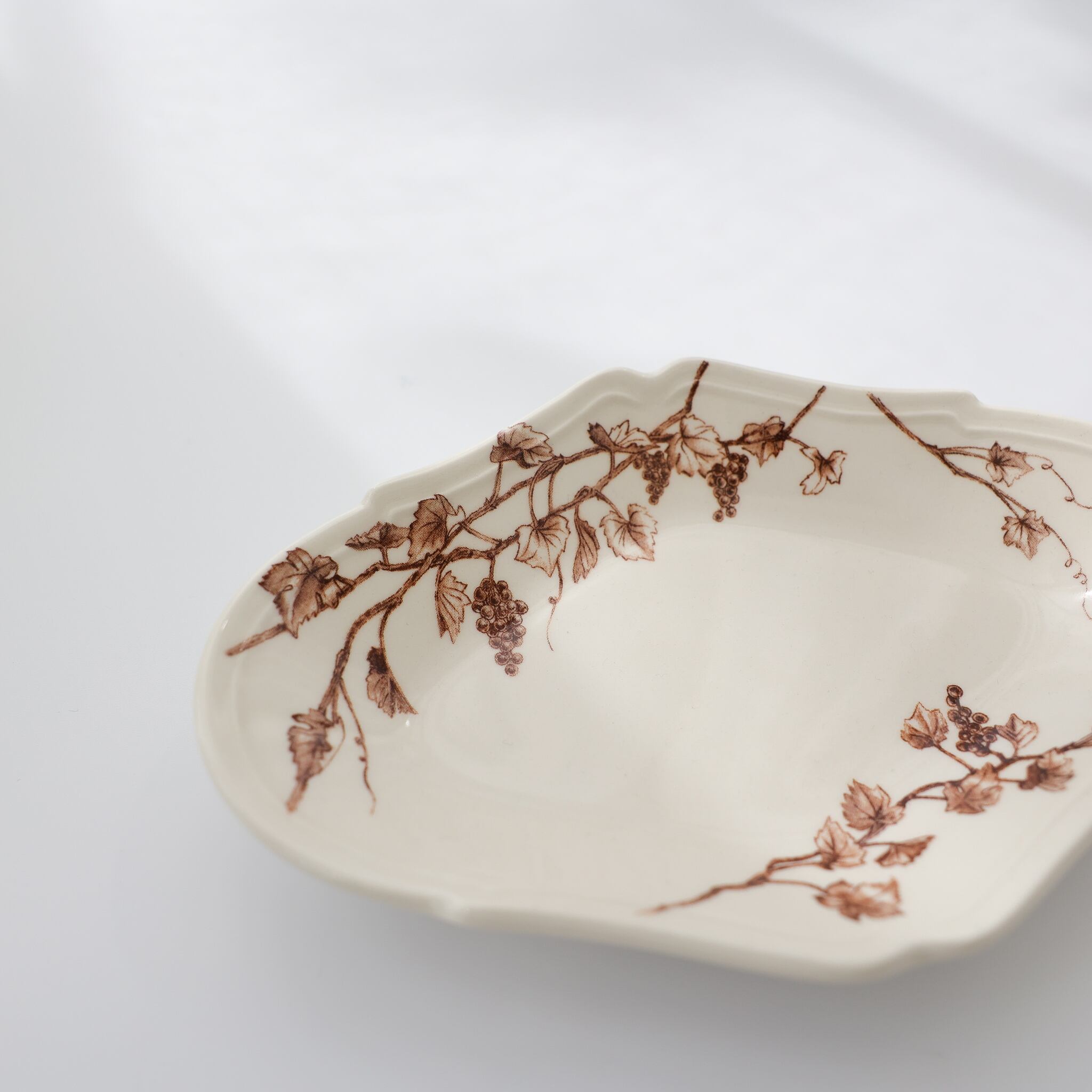 葡萄の枝や果実、伸びた蔓を大胆に配置し、料理と絵柄がより引き立てあうように。