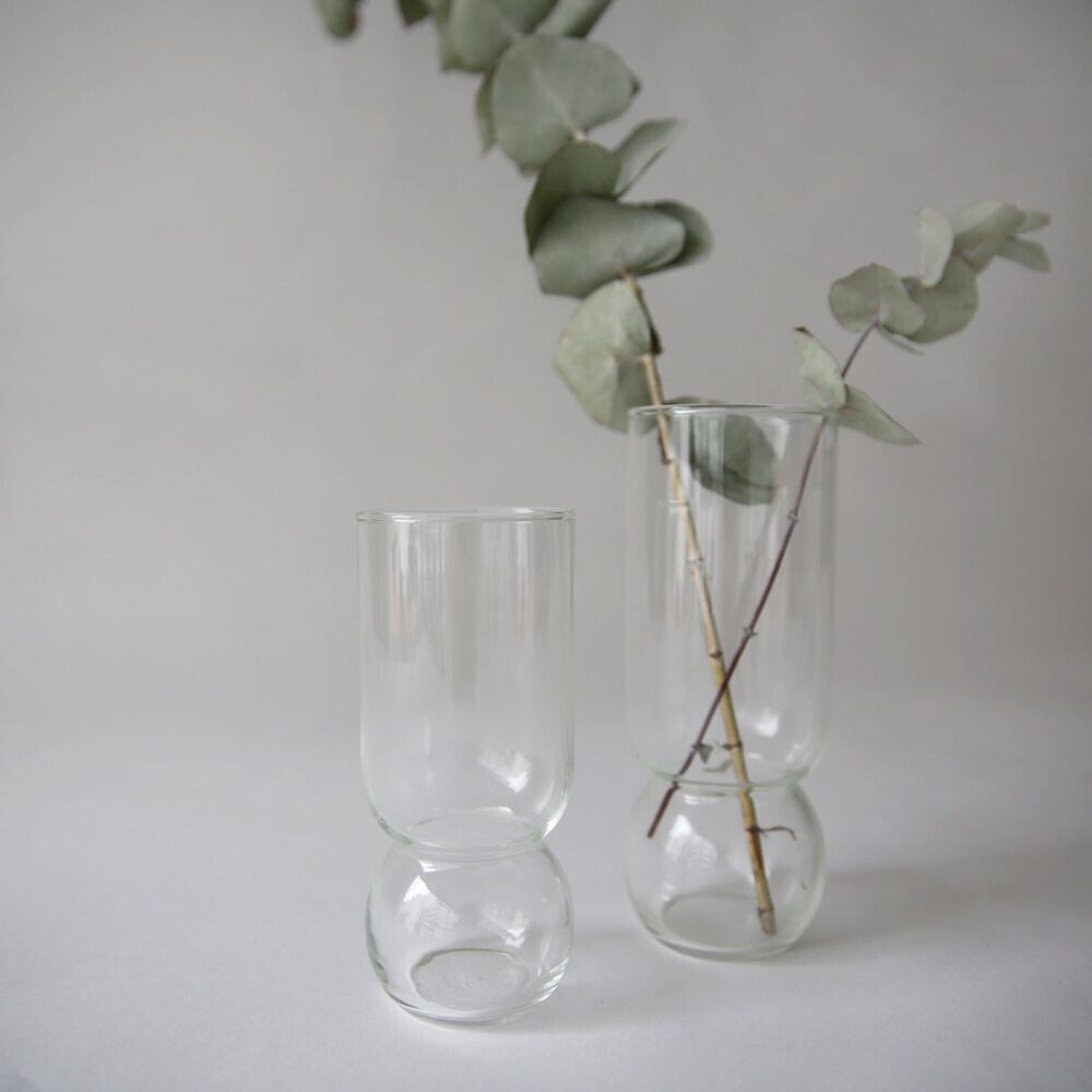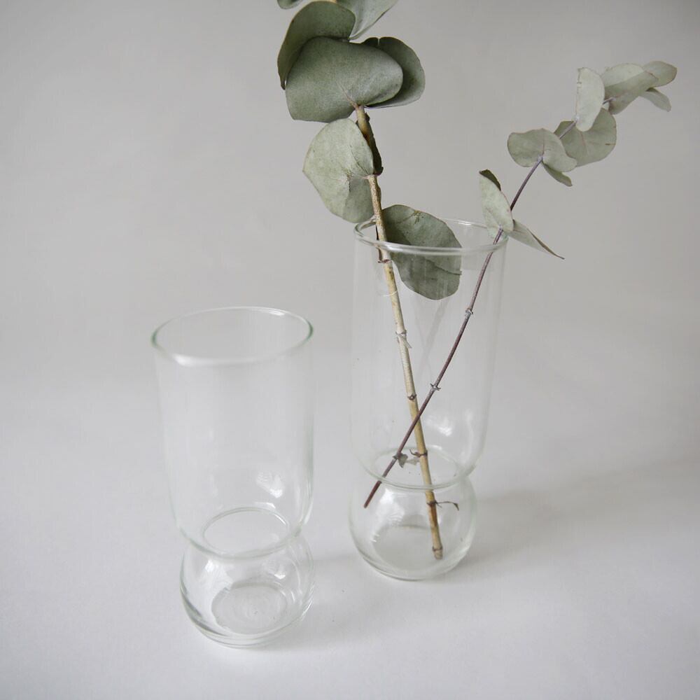 上部がストレート、下部がコロンと丸くなった形が特徴のフラワーベースです。