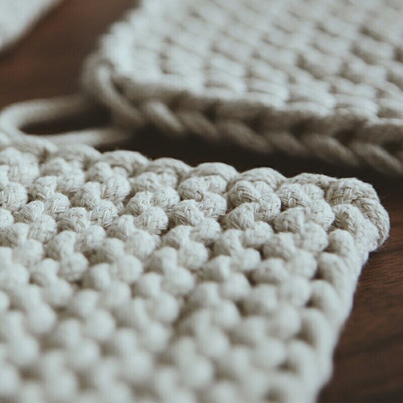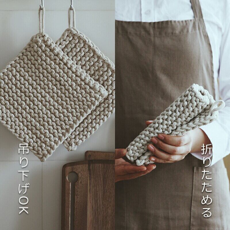 どこか懐かしい雰囲気のある綿製のハンドメイド鍋敷きです。手作り感のあるシンプルなフォルムなので、幅広いデザインのテーブルにフィットします。