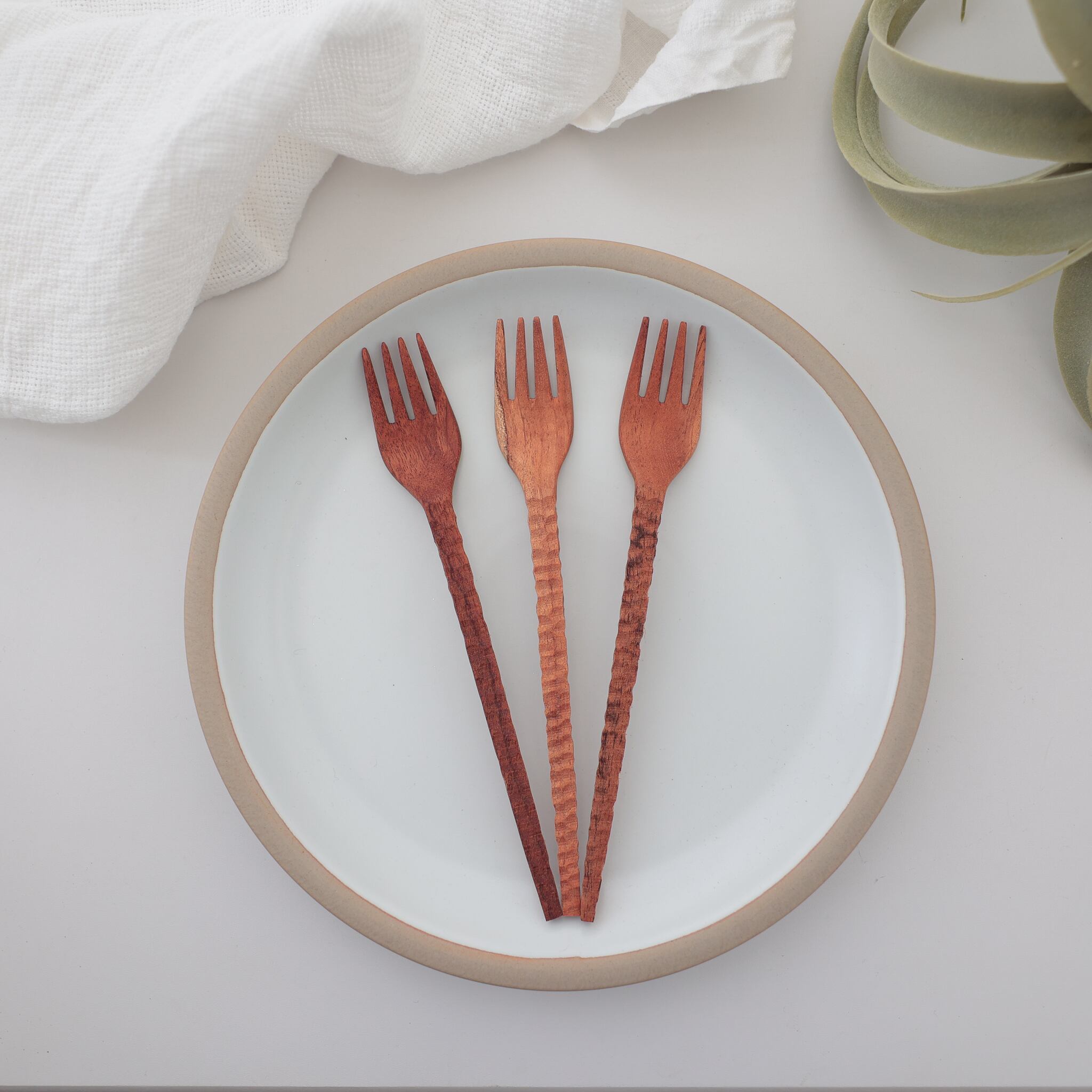 ニームのフォークです。サラダやパスタにぴったりのサイズ。ベンガル地方では馴染み深いマスタードオイルで仕上げています。