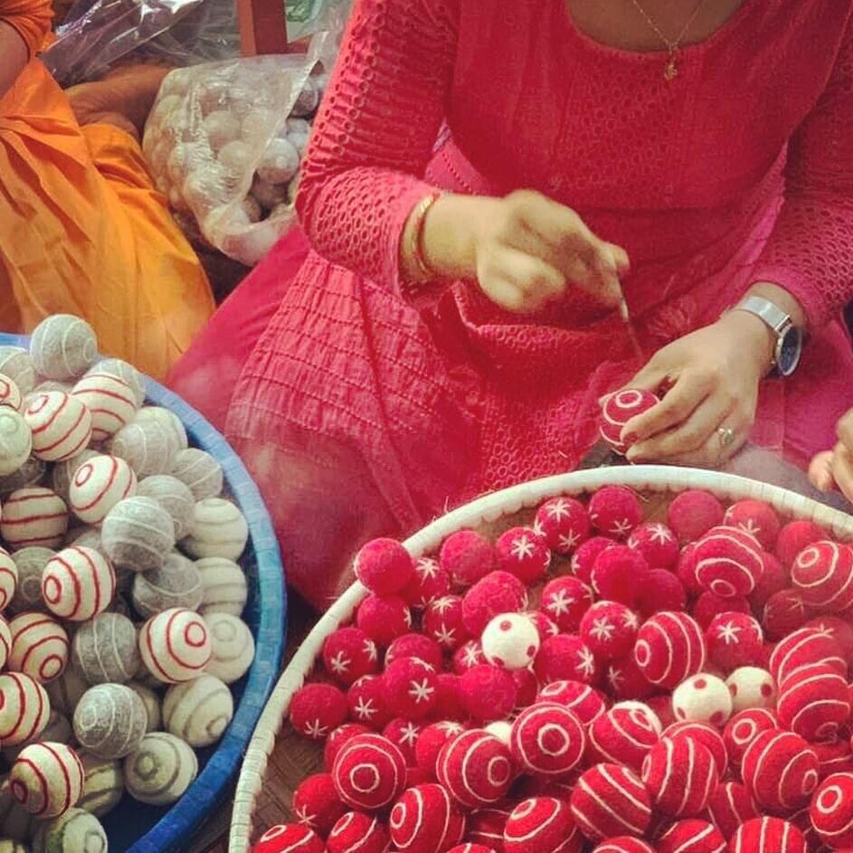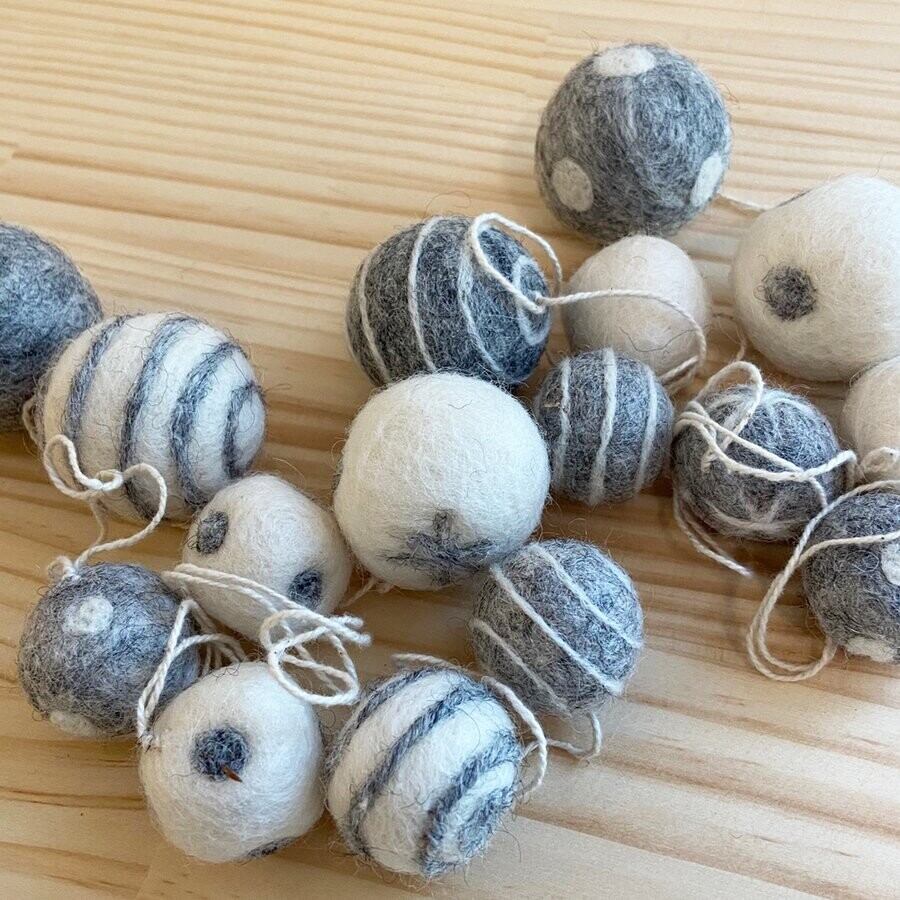 ネパールで手作りのやさしいフェルト玉のオーナメントで、クリスマスツリーにはもちろん、インテリアとして置いておくだけでかわいいです。