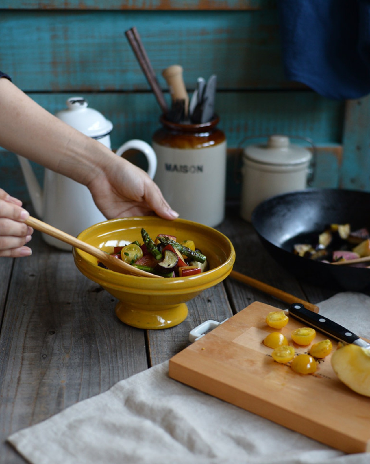 他の器と合わせることで高低差や、リズムが生まれ、テーブル全体に贅沢感をもたらします。コールスローやチョップサラダ、煮物や和え物の盛り鉢としても使い勝手が良く、和洋どちらのスタイルにも馴染みます。