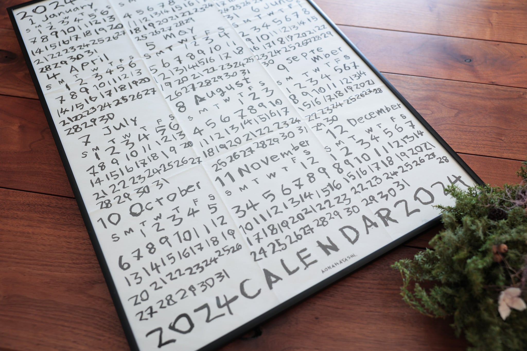 画家・イラストレーターの林青那さんによる、大きな一枚紙に刷られたポスターカレンダー。