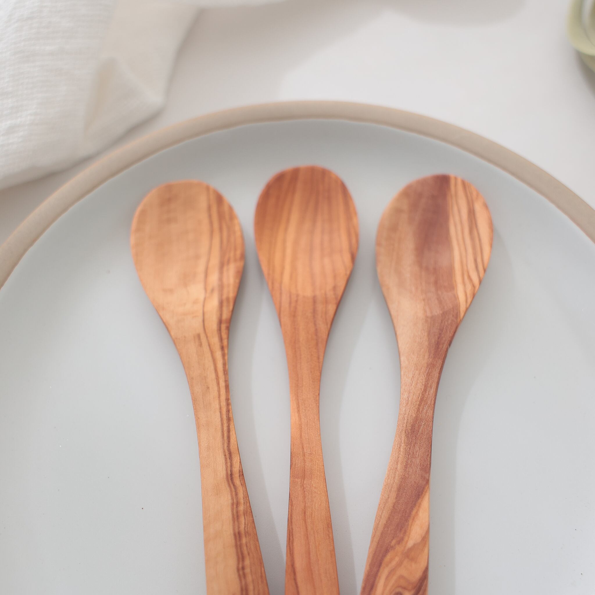 自然なテイストが人気のオリーブの木のカレースプーンです。自然木を生かした美しい木目。