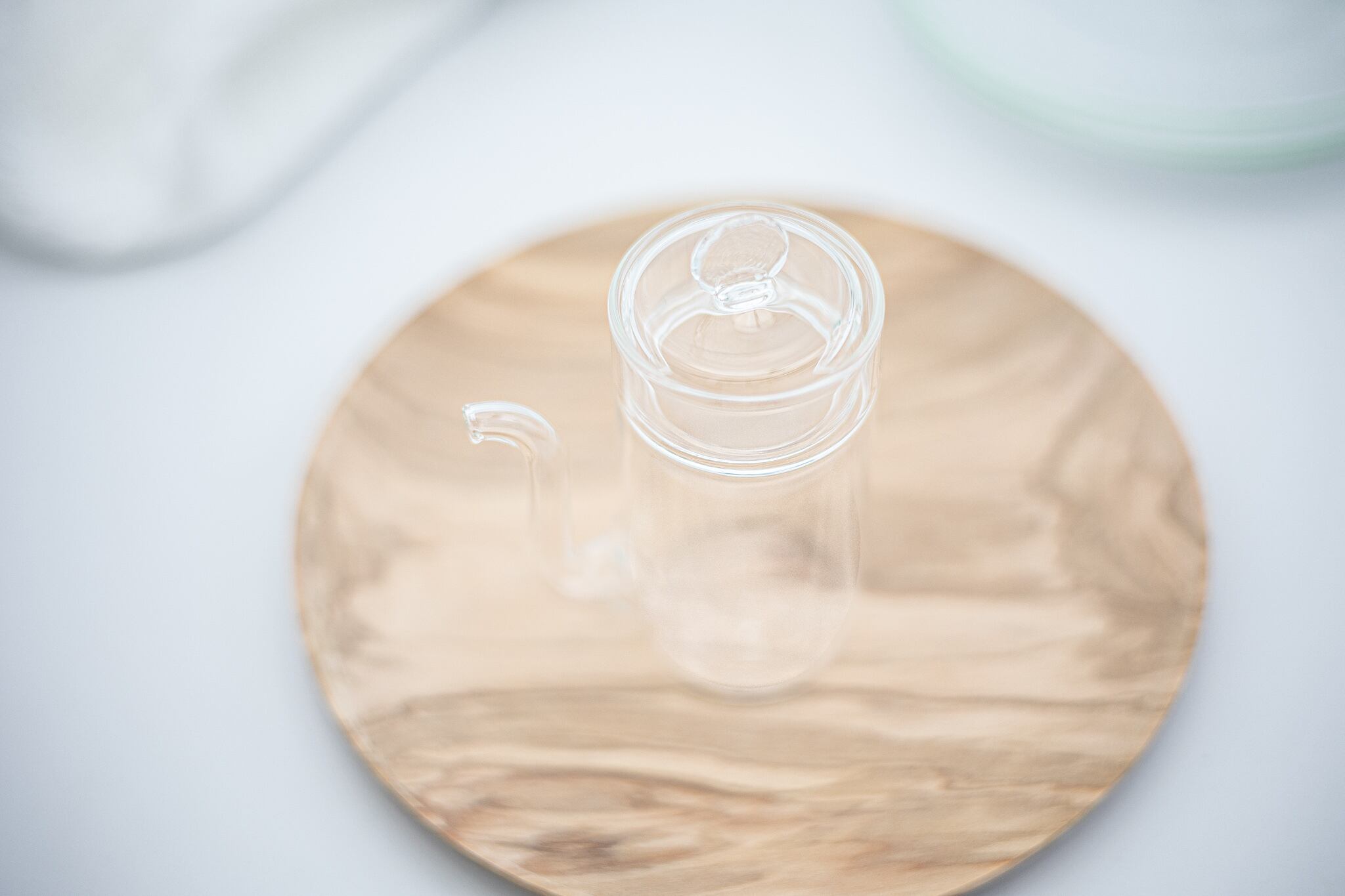 耐熱ガラスで熱湯が利用できるのでオリーブオイルや調味油用に使用してもお手入れが楽ちんです。匂いが付きにくいのも特徴です。