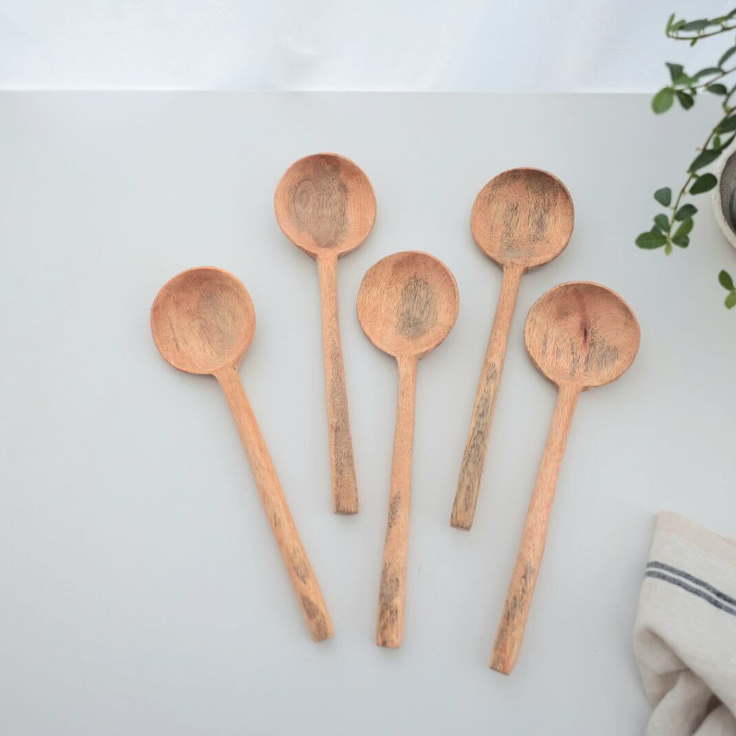 マンゴーの木からひとつひとつ削ってつくられる、素朴でかわいい木のスプーン。