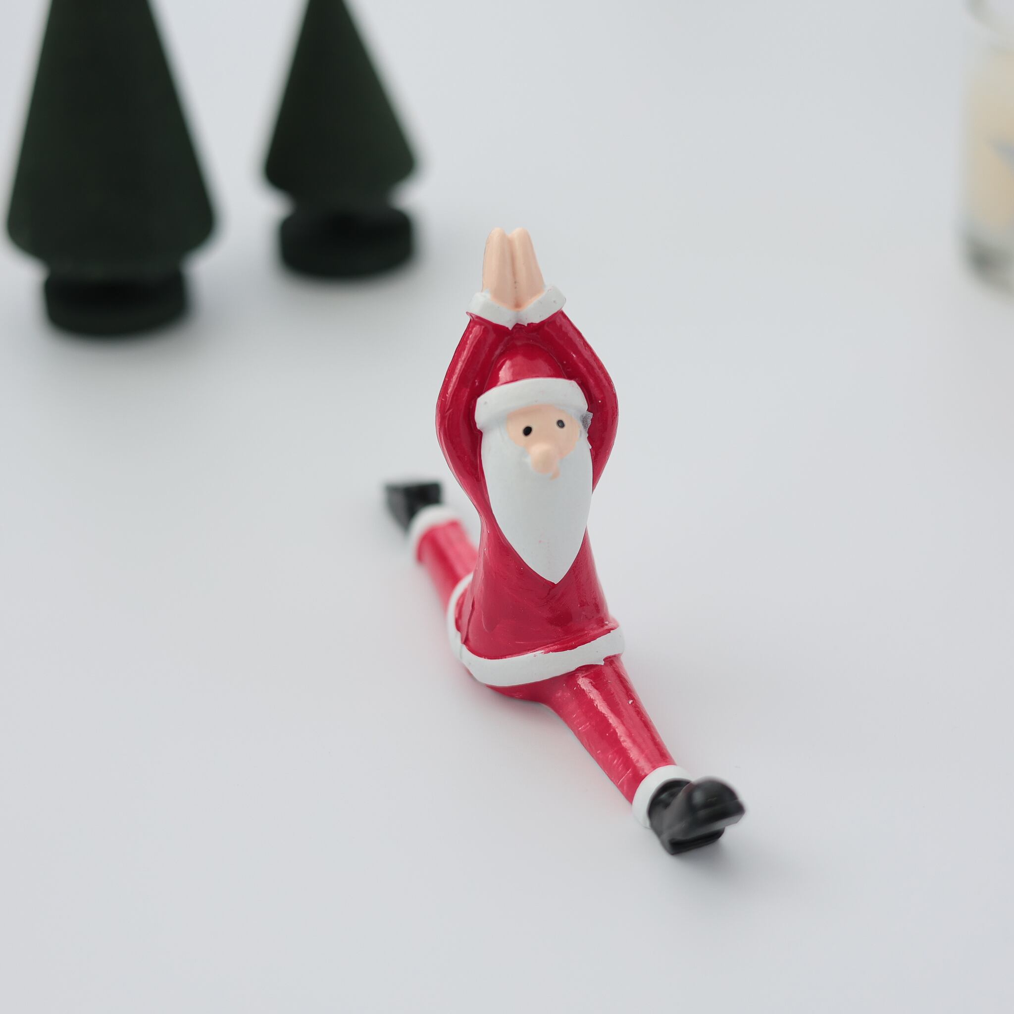 ヨガをしているユーモアなサンタスタンドです。